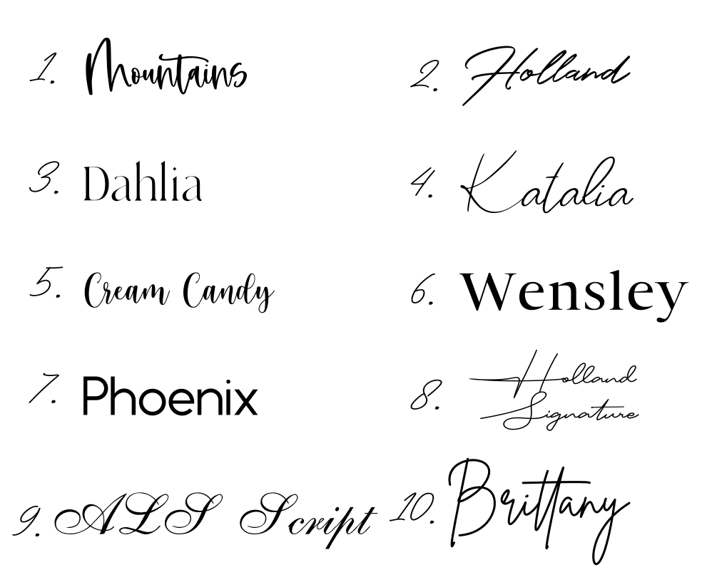 Here are all the colours and fonts we use to create beautiful pieces for you. We love to to design and create custom products, it is our speciality. We can create anything from announcement plaques (in any shape) to signage for events. Below are some custom designs we have created. If you cannot find exactly what you are looking for on our website please get in contact with us and we can create something unique to your needs.