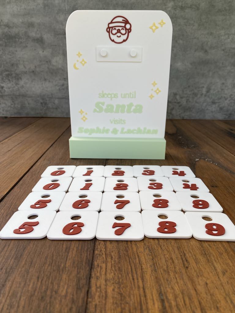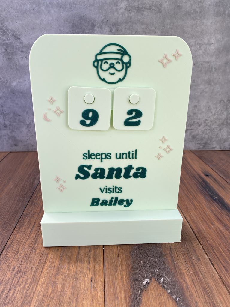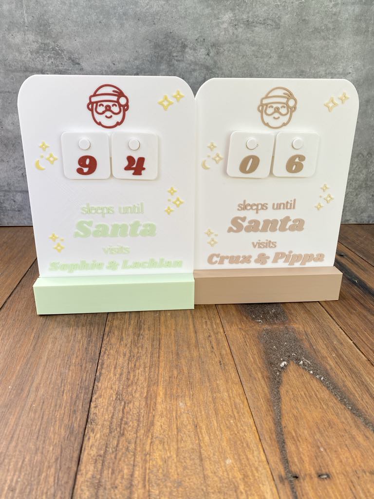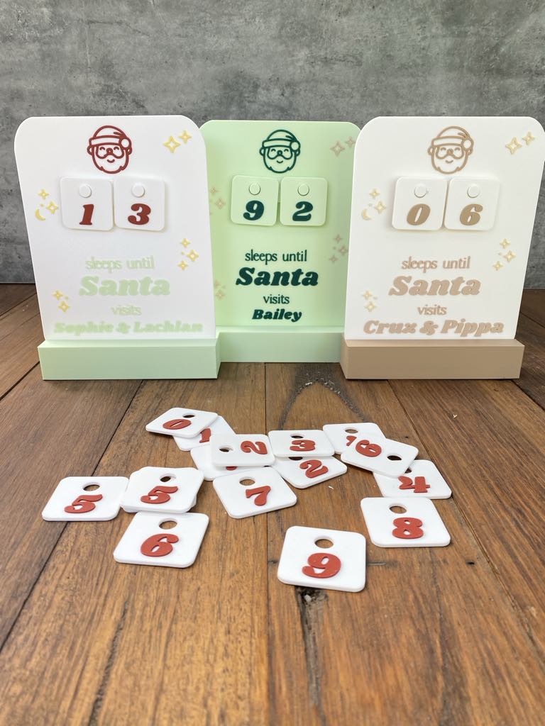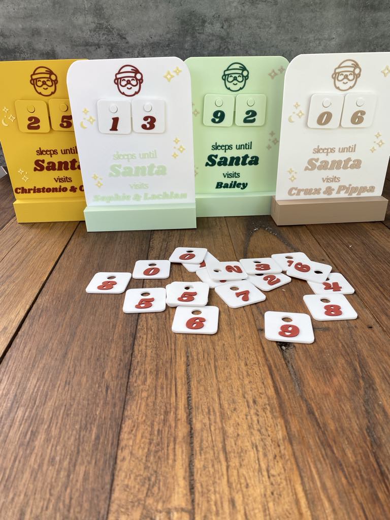 Our ‘Christmas Countdown Plaque’ is the perfect personalised addition to your Christmas Decor this year! A great way for mothers, fathers to help their children to countdown the days until Santa comes. It’s a great way to practice number counting and build the hype around Christmas. You can countdown from 99 days! Choose to add a stand if you like and your colours!