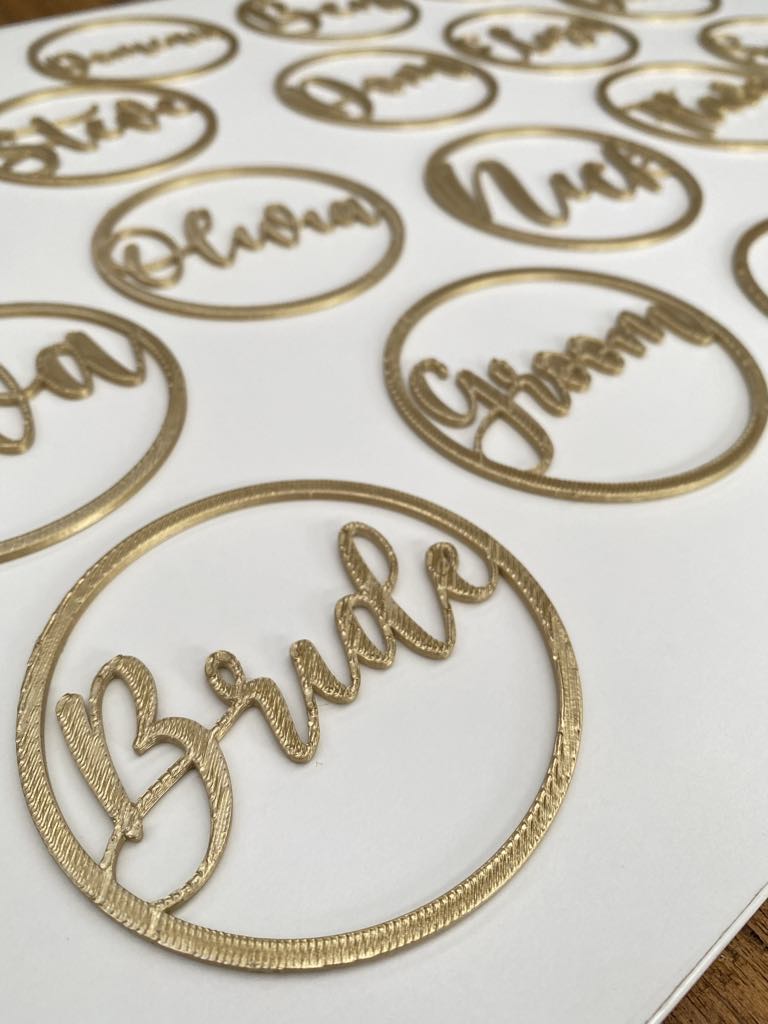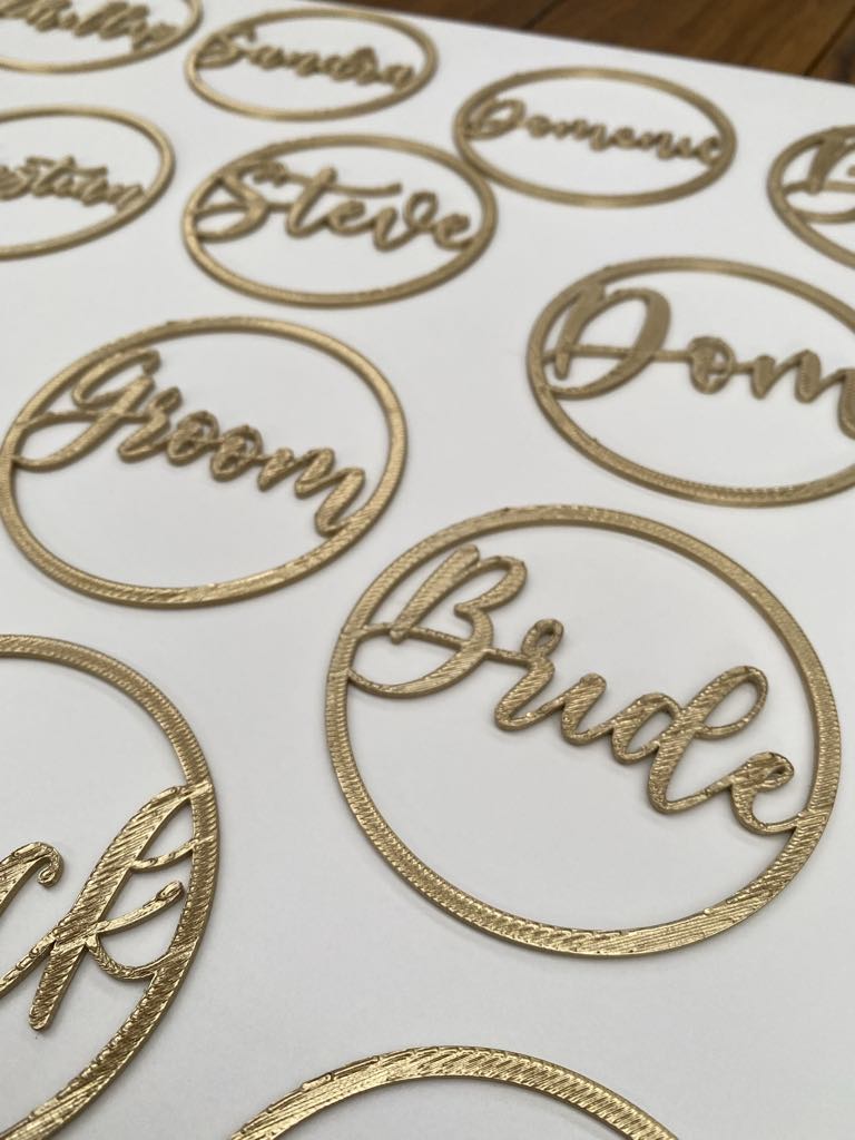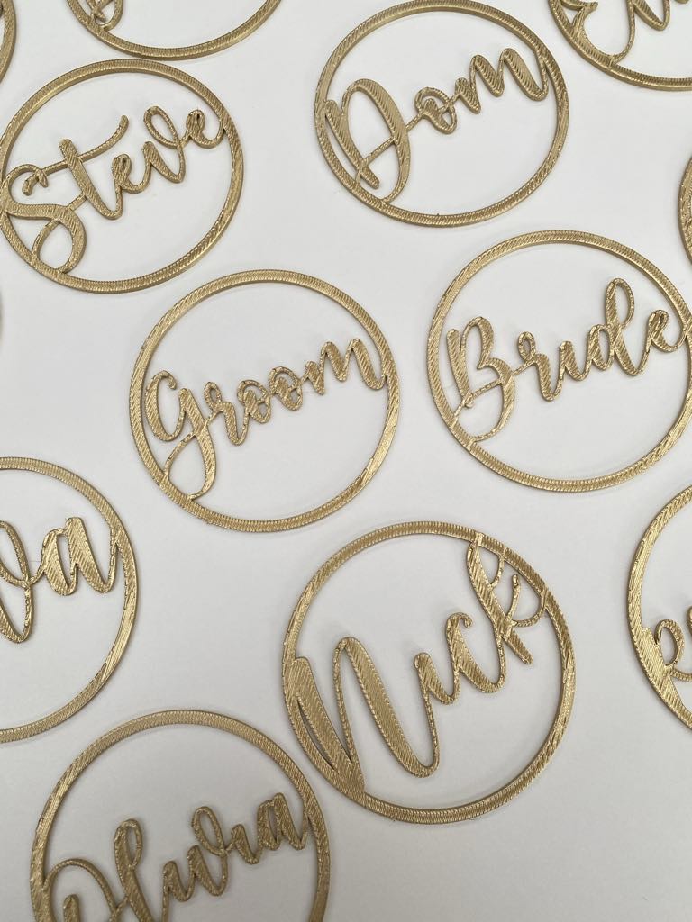 Our ‘Circle Place Names’ are the perfect addition to your next event! These are great for christenings, baby showers, hens, bridal showers and weddings! They make a lovely little favour as well.