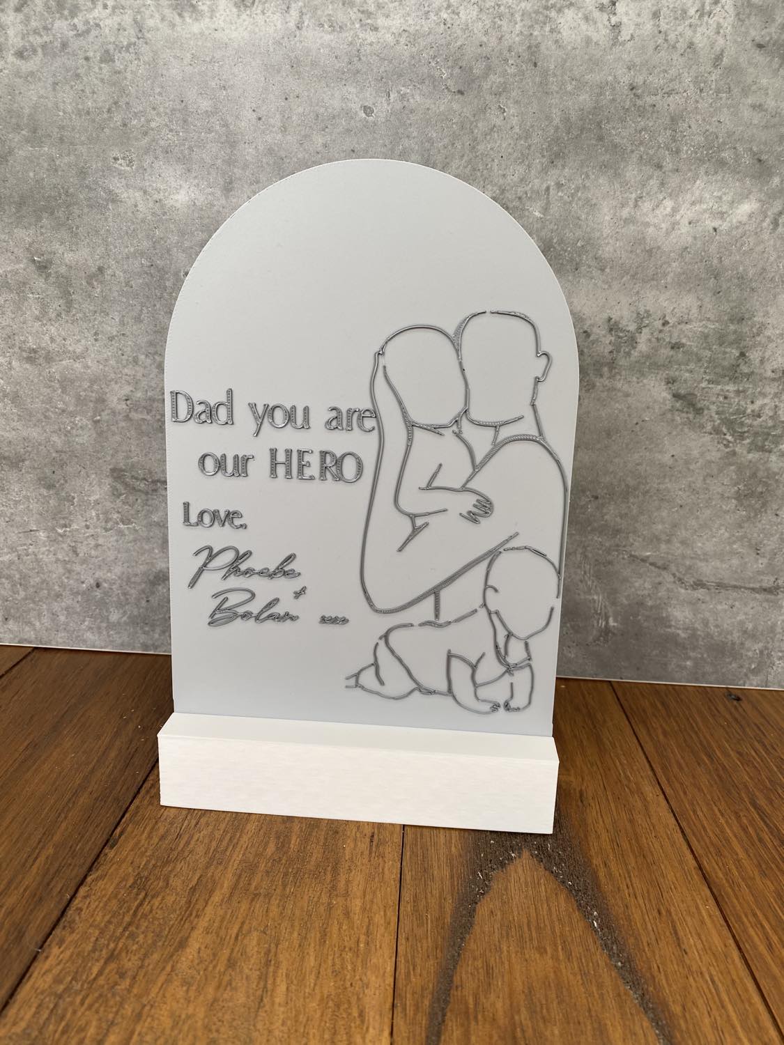 Our ‘Father’s Day Plaque’ is the perfect personalised gift to give this Father’s Day! A great way for mothers and children to show their love for their father’s this Father’s Day. Our ‘Father’s Day Plaque’s’ allows you to personalise with your child’s name and the option to have your own custom personalised message from you and/or your children. Choose to add a stand if you like and choose the size!