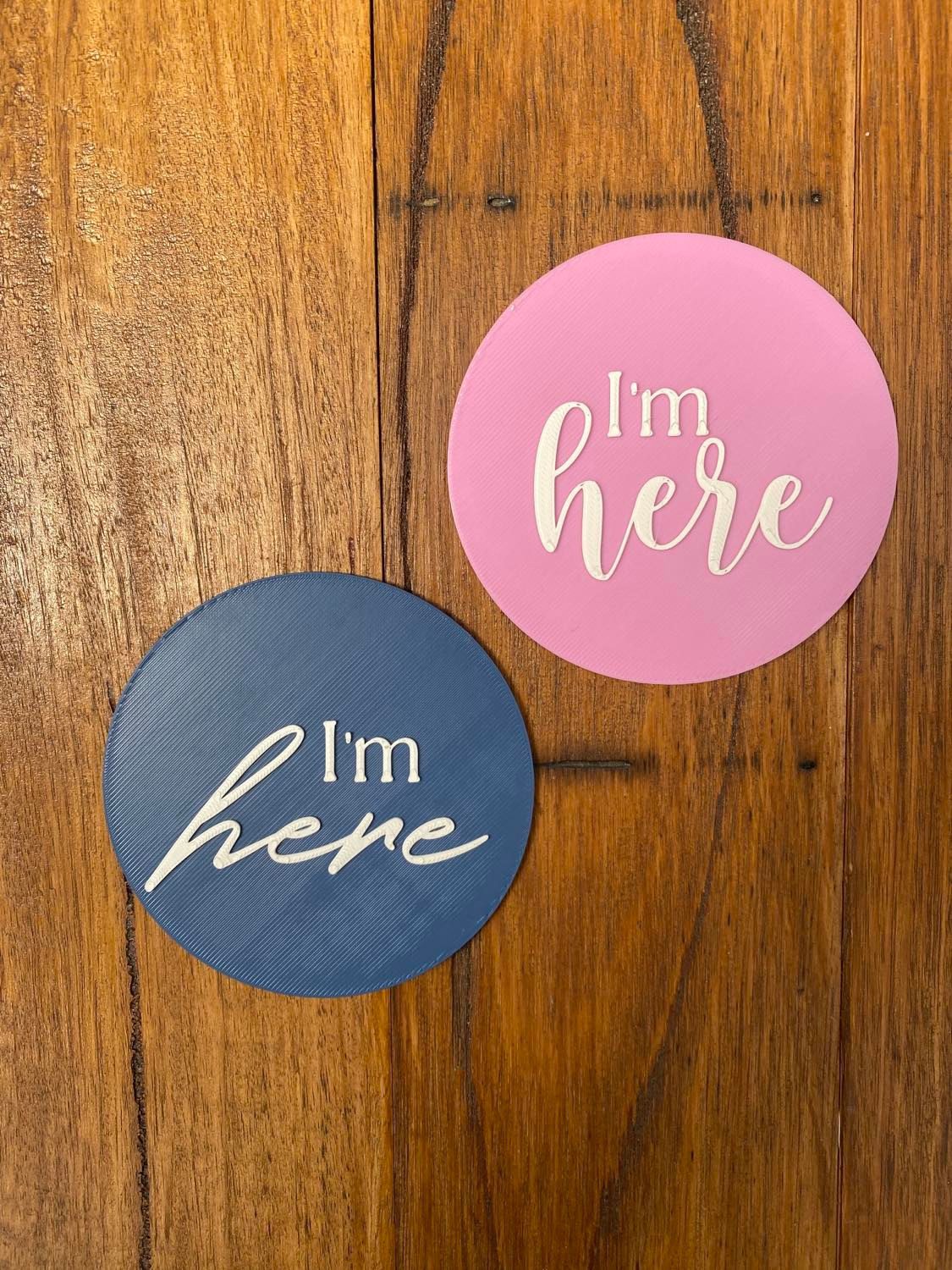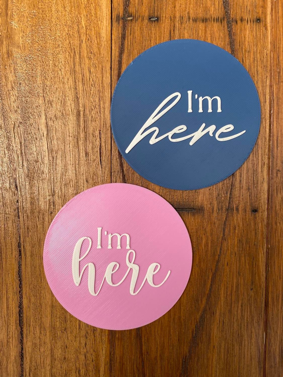 Our ‘I’m Here’ plaques are the perfect way to let the world know your newborn baby has arrived! A great way for mothers and fathers to announce the birth of their little one. This plaque can also be used as dĂ©cor for your baby’s nursery giving the room a personalised touch.  These plaques are lightweight and can easily be placed onto a wall. Two designs available.