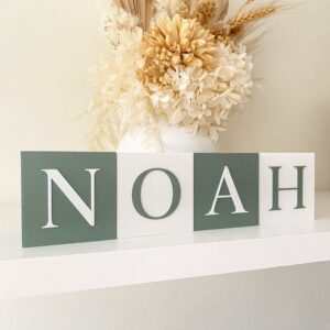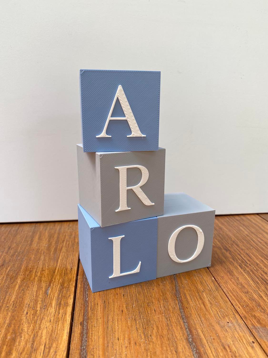 Our ‘Letter Blocks’ are the perfect addition to your little ones nursery. Each ‘Letter Block’ is stackable, comes in two size options and are completely customisable allowing parents to choose any  colours they like! They make a great piece of shelf dĂ©cor in your baby’s room.