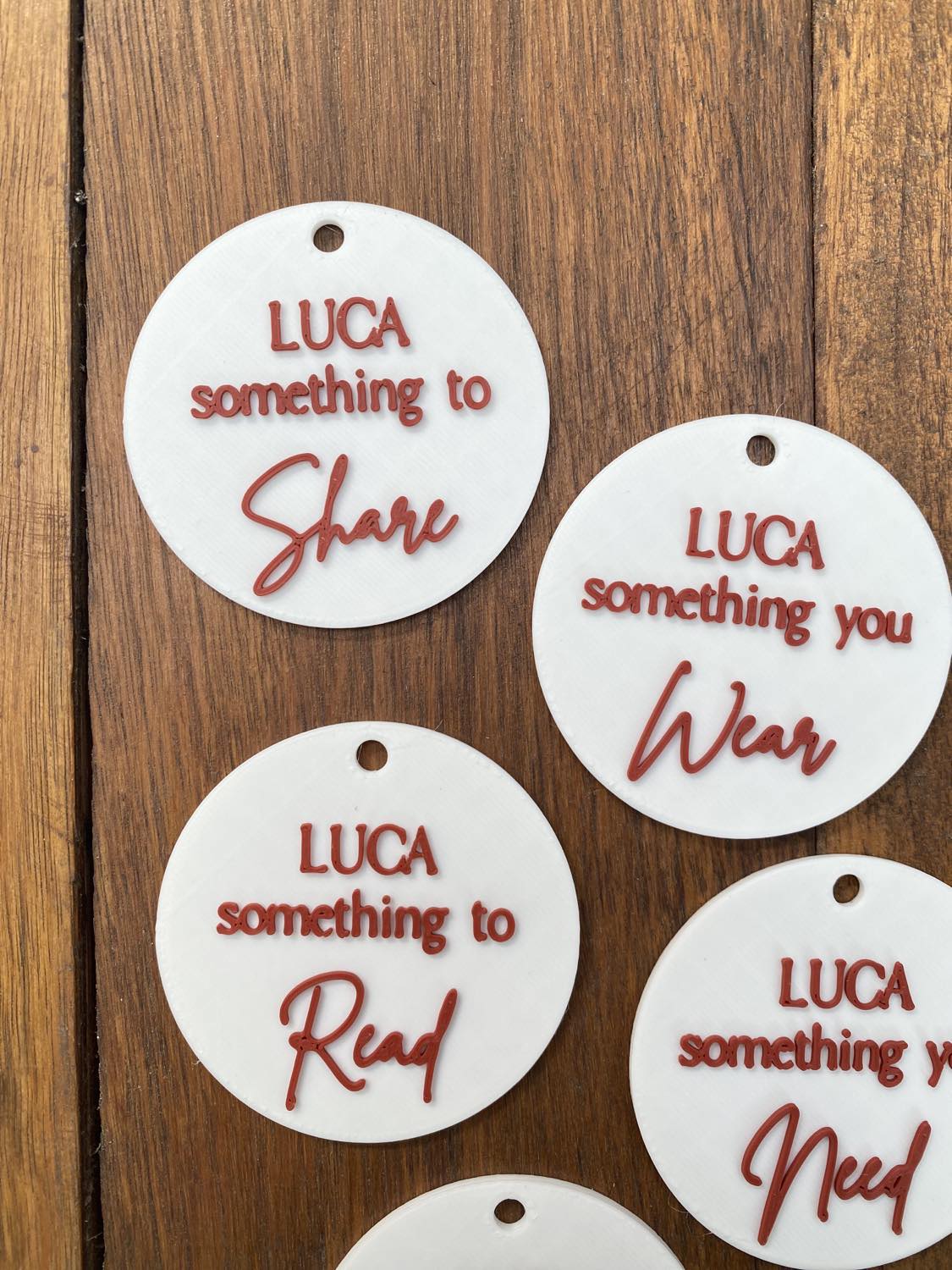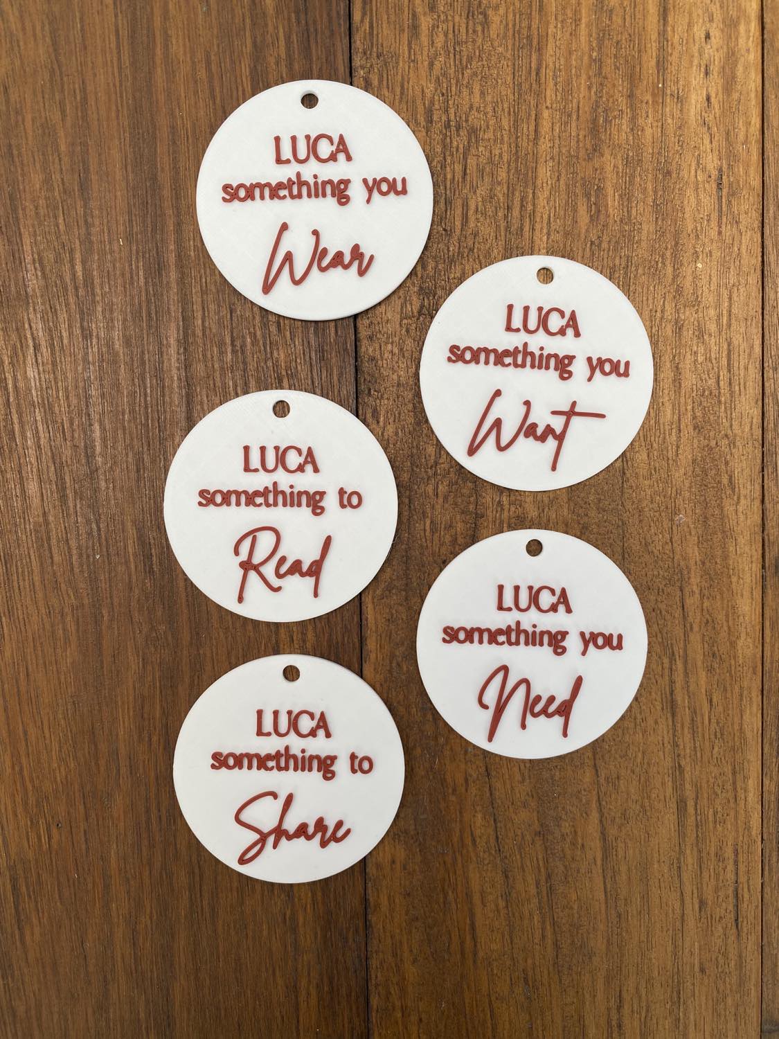 Our ‘Something To Tags’ are the perfect personalised addition to your Christmas presents this year! A great way for expecting parents, mothers and fathers to personalise and label gifts with this sweet tradition and they are reusable! Our Our Something To Tags are available in two sizes.