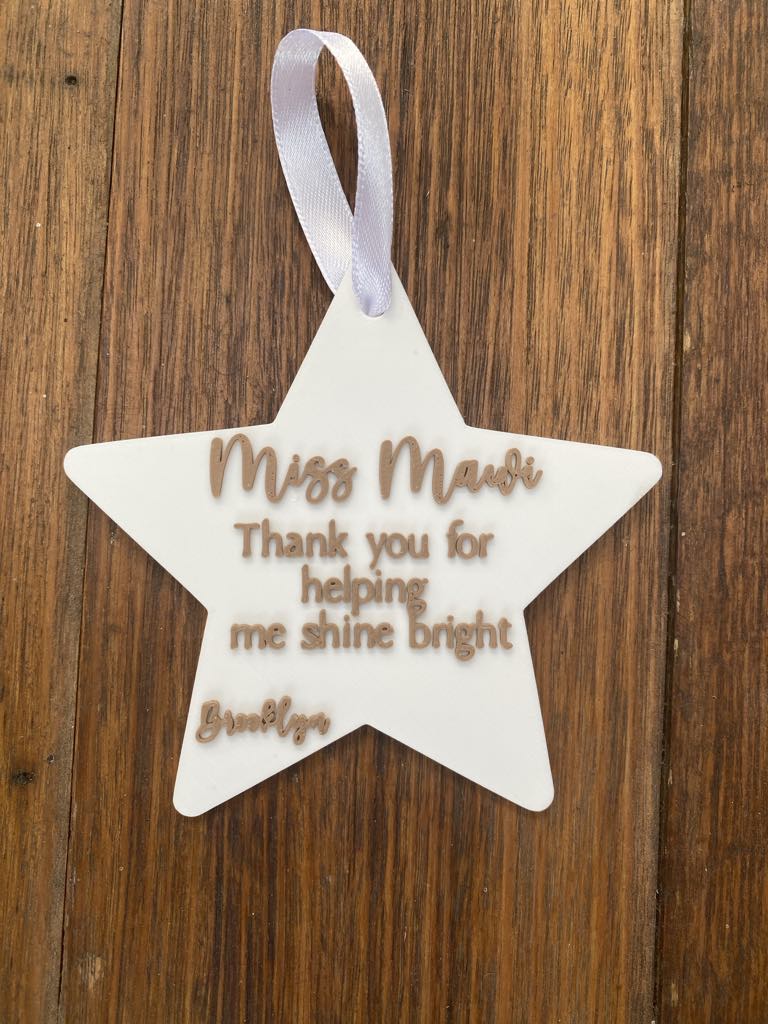 Our ‘Teacher Shine Bright Christmas Decoration’ is the perfect personalised gift! A great way for mothers, fathers and family’s to thank the amazing effort our teachers have put in this year.