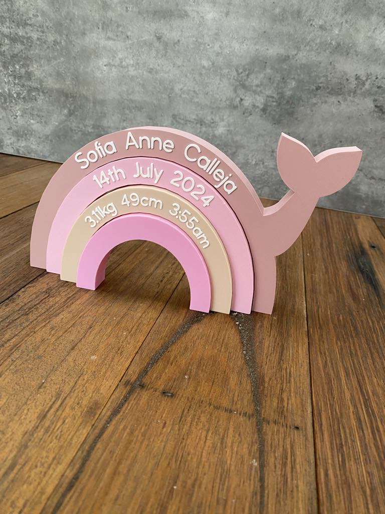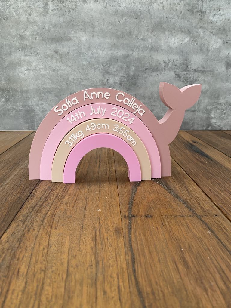 Our ‘Under The Sea Stackers’ are the perfect addition to your little ones room. They are stackable and completely customisable! Mothers, fathers and parents can build your own stacker. This could be a mermaid or whale! Choose between 3-4 arch, whichever colours you like, text or not text, text on one, two or all the arches; the choice is yours! Our Under The Sea Stackers are a completely unique personalised piece of nursery dĂ©cor. They can be used to display your little ones birth details, just their name or have your whole family’s names on them. A lovely keepsake to enjoy for years to come.